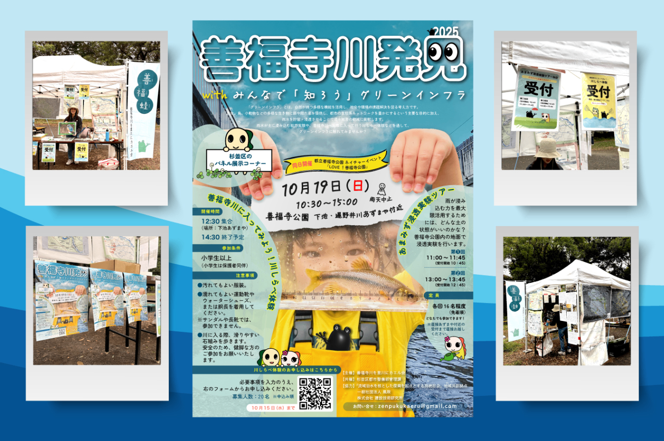 「善福寺川発見」とは、善福寺川の自然や環境課題に触れながら、地域の川との関わり方や、グリーンインフラの考え方を広めることを目的とした体験型イベントです🌱 今年も10月19日(日)に善福寺公園で開催しました!