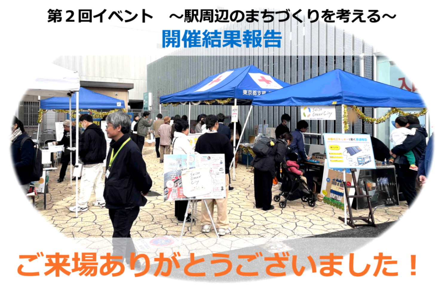2025年12月20日(土)成城学園前駅南口小広場にて、成城駅前未来まちづくりキャンバス(略称:成城まちキャン)主催で、第2回目のイベント〜駅周辺のまちづくりを考える〜を開催し、400名を超える皆さまにご来場いただきました!